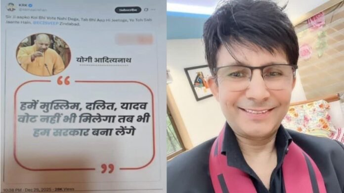 पोस्ट की कॉपी के आधार पर FIR दर्ज: हजरतगंज इंस्पेक्टर विक्रम सिंह ने बताया कि पोस्ट में दर्शाया गया कि सीएम योगी ने कहा कि हमें मुस्लिम, दलित और यादव वोट नहीं भी मिलेगा, तब भी हम जीतेंगे. शिकायतकर्ता का कहना है कि यह पूरी तरह से झूठा और एडिटेड स्क्रीनशॉट है, जिसे जानबूझकर सरकार की छवि खराब करने और समाज में विद्वेष फैलाने के लिए शेयर किया गया. हजरतगंज कोतवाली में एक्स हैंडल @kamaalrkhan (KRK) के खिलाफ मुकदमा दर्ज किया गया है