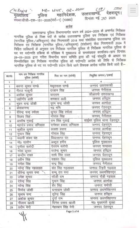 देहरादून: उत्तराखंड पुलिस विभाग में आखिरकार लंबे इंतजार के बाद प्रतीक्षारत 57 दरोगाओं को प्रमोशन का तोहफ़ा देकर इंस्पेक्टर बना दिया गया है।