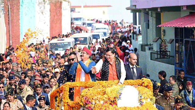 नई टिहरी: मुख्यमंत्री पुष्कर सिंह धामी ने मंगलवार को एक दिवसीय नई टिहरी भ्रमण के दौरान विभिन्न कार्यक्रमों में प्रतिभाग किया। इस दौरान मुख्यमंत्री धामी 2 किमी लंबे विशाल रोड शो में शामिल हुए। रोड शो के दौरान हज़ारों की संख्या में स्थानीय जनता ने मुख्यमंत्री का स्वागत किया। मुख्यमंत्री धामी ने हज़ारों की संख्या में नई टिहरी पहुँचे स्थानीय जनता, महिला स्वयं सहायता समूहों, युवाओं और स्कूली छात्र-छात्राओं इस भव्य अभिवादन के लिए आभार प्रकट किया।