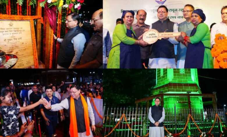 मुख्यमंत्री पुष्कर सिंह धामी ने किया देहरादून के ऐतिहासिक घण्टाघर के भव्य रूपांतरण एवं स्वचालित प्रकाश व्यवस्था का लोकार्पण