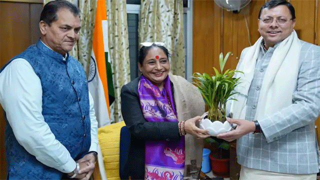 देहरादून: मुख्यमंत्री पुष्कर सिंह धामी ने विधानसभा में विधानसभा अध्यक्ष ऋतु खंडूड़ी भूषण से शिष्टाचार भेंट की।