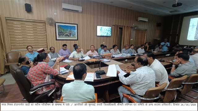 देहरादून: जिलाधिकारी सोनिका ने नगर निगम क्षेत्रान्तर्गत वार्डाे के नवीन परीसीमन के सम्बन्ध में दावे / आपत्तियों पर सुनवाई की। जनपद की विधानसभा, मसूरी, राजपुर, रायपुर, कैन्ट, धर्मपुर, डोईवाला, अन्तर्गत नगर निगम देहरादून के वार्डाें का परीसीमन के सम्बन्ध में प्रकाशित सूचनाओं के क्रम में प्राप्त आपत्तियों की सुनवाई की गई।