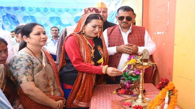 पिथौरागढ़: पिथौरागढ़ आगमन पर प्रदेश सरकार में कैबिनेट मंत्री रेखा आर्या ने बतौर मुख्य अतिथि मोस्टमानू मेले महोत्सव में प्रतिभाग किया।जहां पर पारंपरिक रूप से स्थानीय महिलाओ ने उनका भव्य स्वागत किया।वहीं उन्होंने मोस्टमानू मंदिर पहुंचकर आशीर्वाद प्राप्त किया और देव डोली के दर्शन भी किये।वहीं इस दौरान आज मंत्री रेखा आर्या ने पिथौरागढ़ के पारंपरिक वेशभूषा को धारण कर सभी का मन मोहा। कार्यक्रम का शुभारंभ दीप प्रज्वलित कर किया गया।अपने संबोधन में कैबिनेट मंत्री ने आयोजको को उन्हें यहां आमंत्रित करने पर धन्यवाद दिया और कहा कि उन्हें यहां आकर और यहां के पारंपरिक परिधान को धारण कर बेहद खुशी हुई।कहा कि आज हमसबको अपनी संस्कृति को बचाने है तो ऐसे मेलो का आयोजन किया जाना बेहद आवश्यक है।साथ ही कहा कि मेले हमारी संस्कृति के संरक्षण व संवर्धन का काम करते हैं।हमारी देवभूमि के अलग अलग क्षेत्रो में अलग अलग संस्कृति देखने को मिलती है।आज उन्हें भी यहां की संस्कृति से रूबरू होने का भी अवसर प्राप्त हुआ है।उन्होंने कहा कि जिस प्रकार से कुम्भ मेला आयोजित होता है उसी तरह से पिथौरागढ़ के मोस्टमानू में आयोजित मेला भी एक तरह से कुंभ मेला ही है।