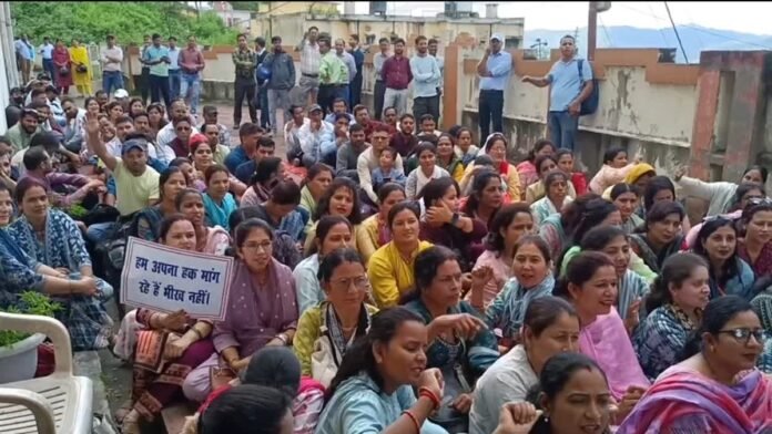 अल्मोड़ा: उत्तराखंड के अल्मोड़ा जिले में गुरुवार 18 सितंबर को अतिथि शिक्षकों (गेस्ट टीचर्स) का गुस्सा फूट पड़ा. उन्होंने ग्रीष्मावकाश और दीर्घावकाश के समय का वेतन नहीं दिए जाने का मुद्दा उठाया. ग्रीष्मावकाश और दीर्घावकाश के समय वेतन नहीं मिलने से गेस्ट टीचर्स आक्रोशित हैं. इसीलिए गुरुवार 18 सितंबर को गेस्ट टीचर्स ने मुख्य शिक्षा अधिकारी कार्यालय अल्मोड़ा का घेराव किया.