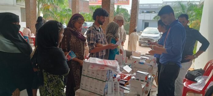 श्री महंत इन्दिरेश अस्पताल की ओर से निःशुल्क जाॅचें की गईं और फ्री दवाईयां भी बांटी गई