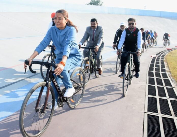 रुद्रपुर: रुद्रपुर स्थित शिवालिक वेलोड्रोम में आयोजित 77वी सीनियर, 54वी जूनियर और 40वी सब जूनियर नेशनल ट्रैक साइकिलिंग चैंपियनशिप में पहुंचकर खेल मंत्री रेखा आर्या ने सोमवार को साइकिलिस्टों का उत्साहवर्धन किया। इस आयोजन में देश भर के लगभग सभी राज्यों और केंद्र शासित प्रदेशों से आए 600 से ज्यादा खिलाड़ी हिस्सा ले रहे हैं।