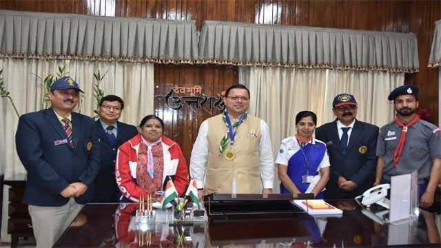 देहरादून: मुख्यमंत्री (CM) पुष्कर सिंह धामी से सोमवार को मुख्यमंत्री कैम्प कार्यालय में भारत स्काउट एवं गाइड की स्थापना दिवस के अवसर पर भारत स्काउट एवं गाइड के प्रतिनिधि दल ने भेंट की। इस अवसर पर प्रतिनिधि दल ने मुख्यमंत्री को स्टीकर एवं ध्वज लगाया। मुख्यमंत्री (CM) ने अंशदान देते हुए कहा कि अधिक से अधिक छात्रों को स्काउट एवं गाइड से जोड़ा जाए। उन्होंने कहा कि अनुशासन, सेवा भाव और परोपकार के कार्यों में भारत स्काउट एवं गाइड की महत्वपूर्ण भूमिका है।