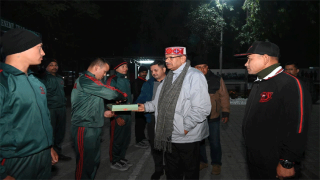 देहरादून: प्रदेश के सैनिक कल्याण मंत्री गणेश जोशी ने नववर्ष 2026 के अवसर पर गढ़ी कैंट स्थित 5/1 जीआर (गोरखा राइफल्स) के जवानों से भेंट कर उन्हें नए साल की शुभकामनाएं दीं। इस दौरान सैनिक कल्याण मंत्री गणेश जोशी ने जवानों को मिठाई खिलाकर उनका उत्साहवर्धन किया।