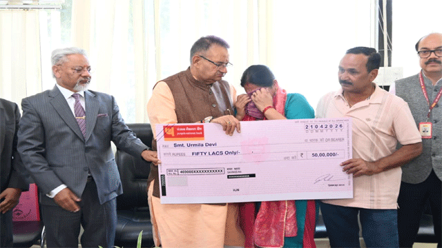 देहरादून: सैनिक कल्याण मंत्री गणेश जोशी ने अपने कैंप कार्यालय में दिवंगत उपनल कर्मचारी कविता गुसाईं के परिजनों को उपनल द्वारा पंजाब नेशनल बैंक के सहयोग से ₹50 लाख की शेष बीमा राशि का चेक प्रदान किया। इस दौरान दिवंगत कर्मचारी की आत्मा की शांति के लिए दो मिनट का मौन रखकर श्रद्धांजलि अर्पित की गई।