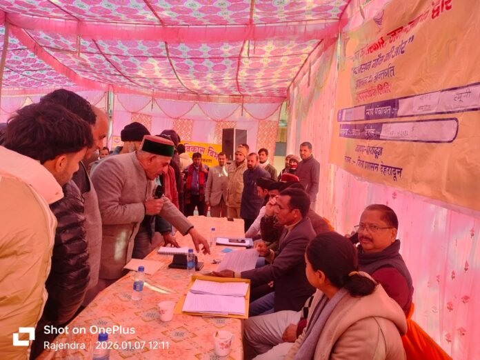 देहरादून: प्रदेश सरकार की महत्वाकांक्षी पहल ‘जन-जन की सरकार, जन-जन के द्वार, प्रशासन गांव की ओर’ अभियान के तहत बुधवार को चकराता ब्लॉक की सुदूरवर्ती क्षेत्र राजकीय इंटर कॉलेज त्यूनी में उप जिलाधिकारी प्रेम लाल की अध्यक्षता में जनसेवा शिविर का आयोजन किया गया। शिविर में ग्रामीणों की समस्याओं का मौके पर निस्तारण किया गया तथा विभागीय योजनाओं के माध्यम से 761 से अधिक लोगों को लाभान्वित किया गया।