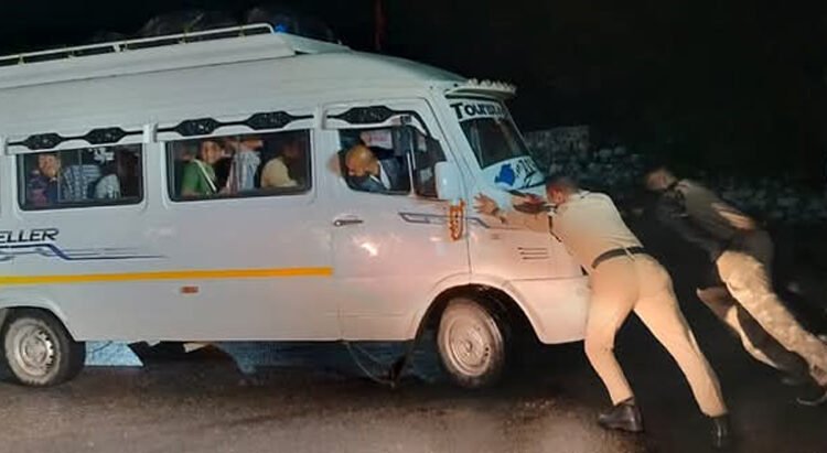 चमोली: आज रात्रि को कोतवाली ज्योतिर्मठ पुलिस को सूचना मिली कि पातालगंगा के पास श्री बद्रीनाथ धाम से दर्शन कर लौट रहे श्रद्धालुओं को ले जा रहा एक टेंपो ट्रेवलर बीच सड़क में खराब हो गया है। सूचना मिलते ही ज्योतिर्मठ पुलिस की टीम तत्काल मौके पर पहुँची।